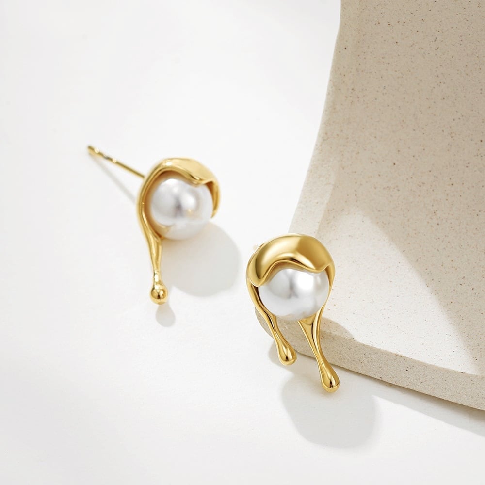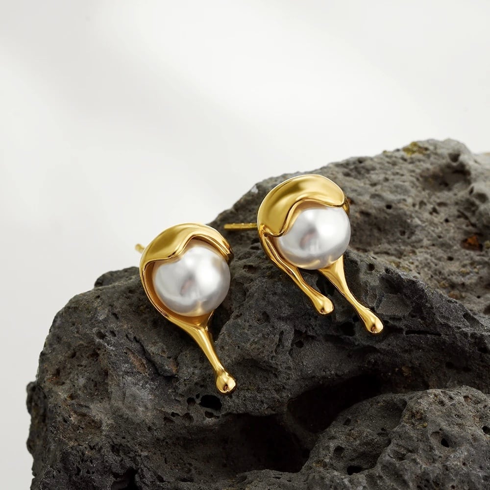 パールを包み込んでこぼれ落ちる、蜂蜜のようなゴールドのしずく。