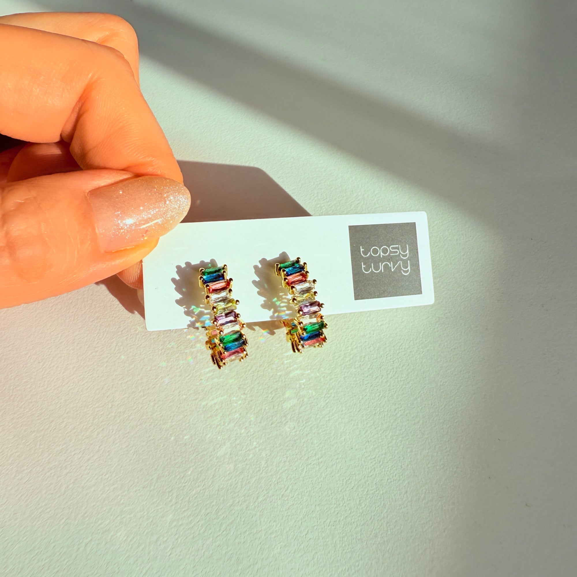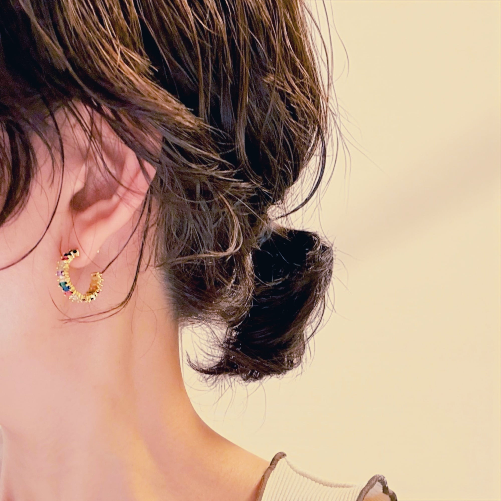 カラフルでキラキラ。でも、どこか落ち着いた上級者のフープピアス。