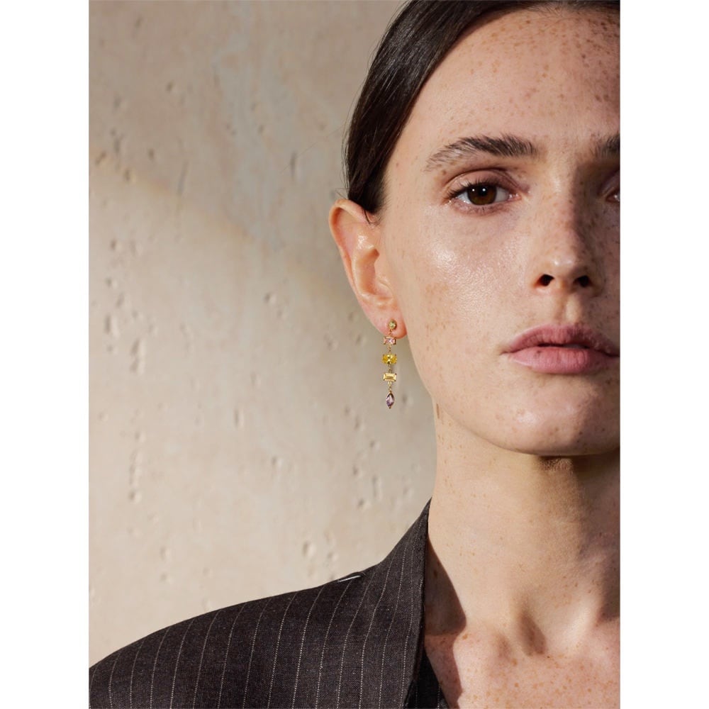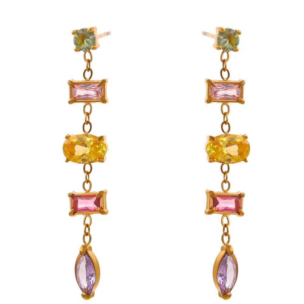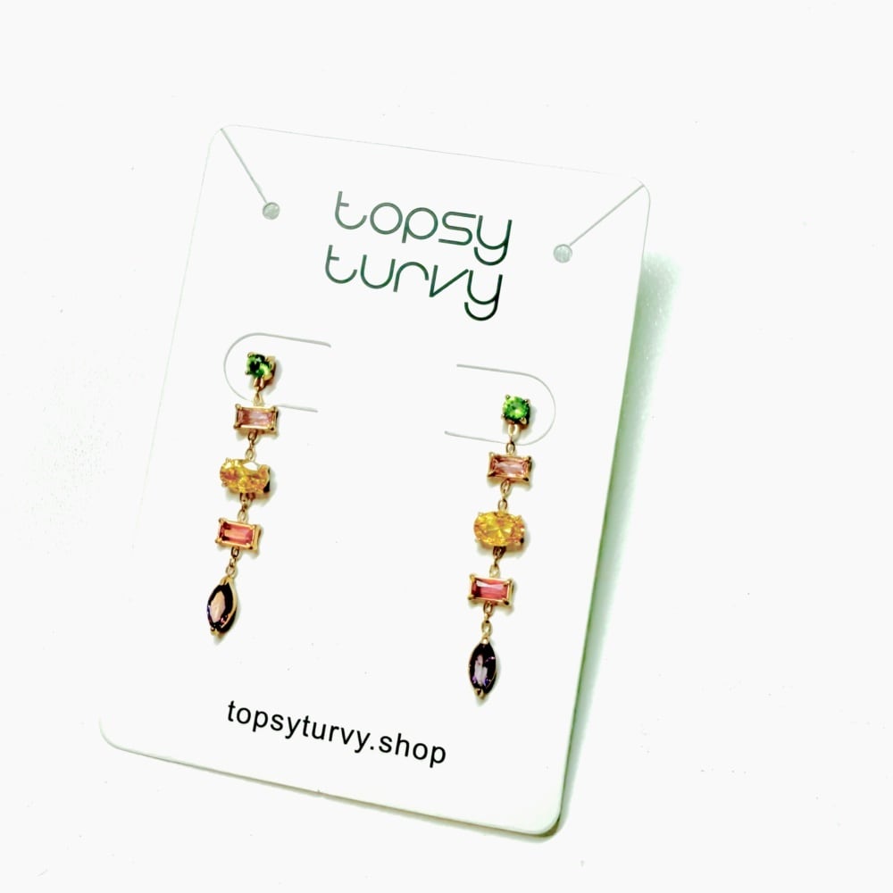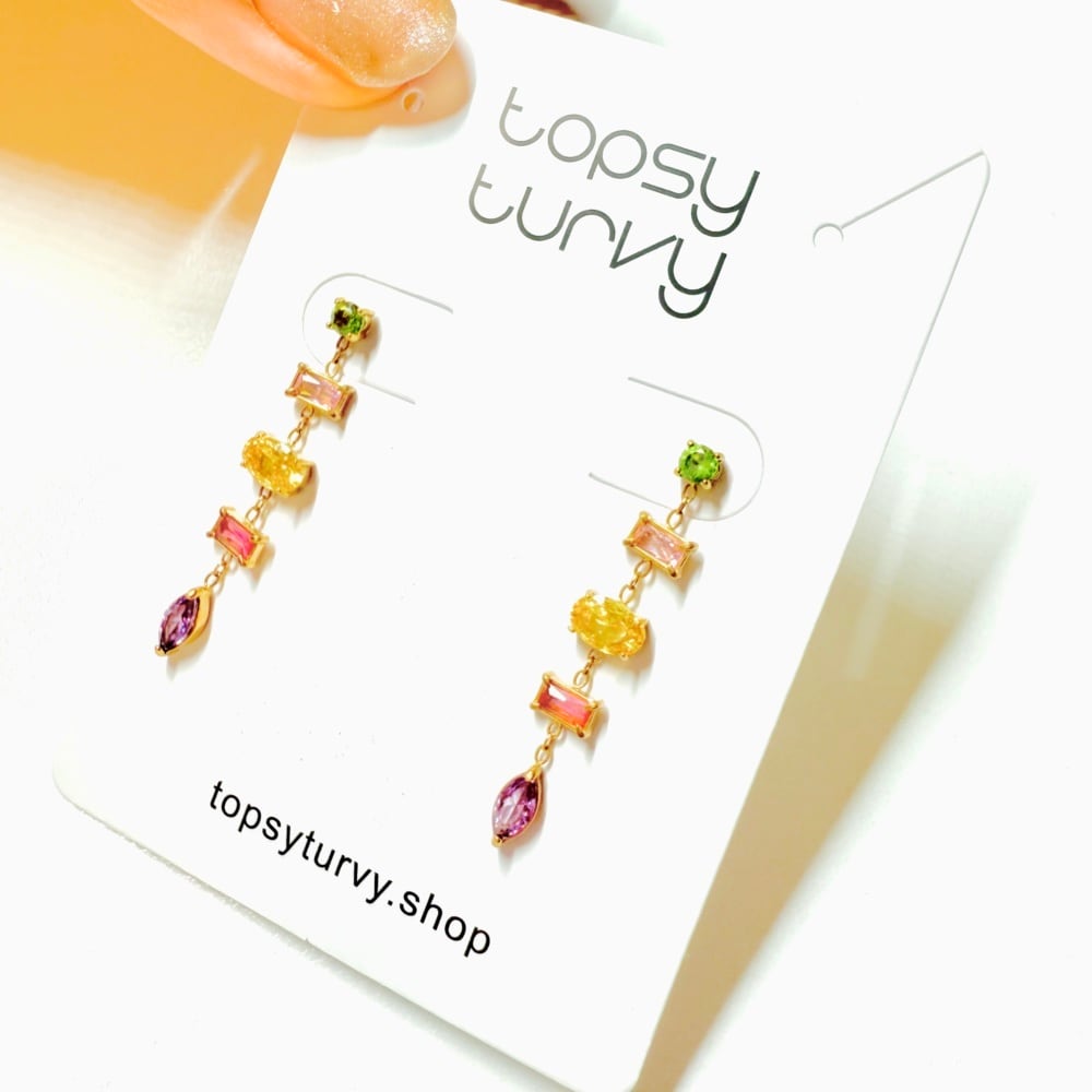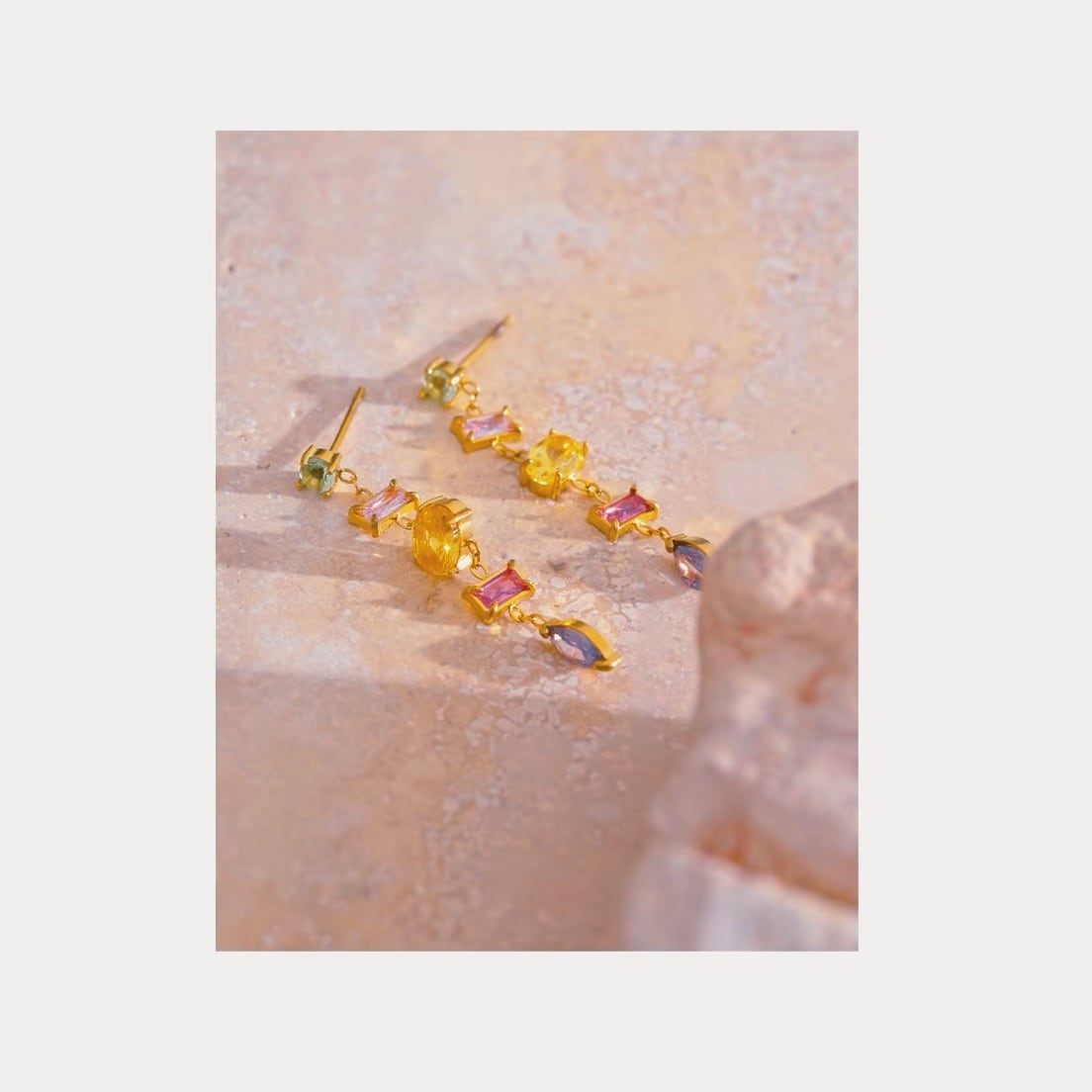 グリーン、ピンク、イエロー、パープルのプリズムたちが、耳元でゆらゆらと輝きます。