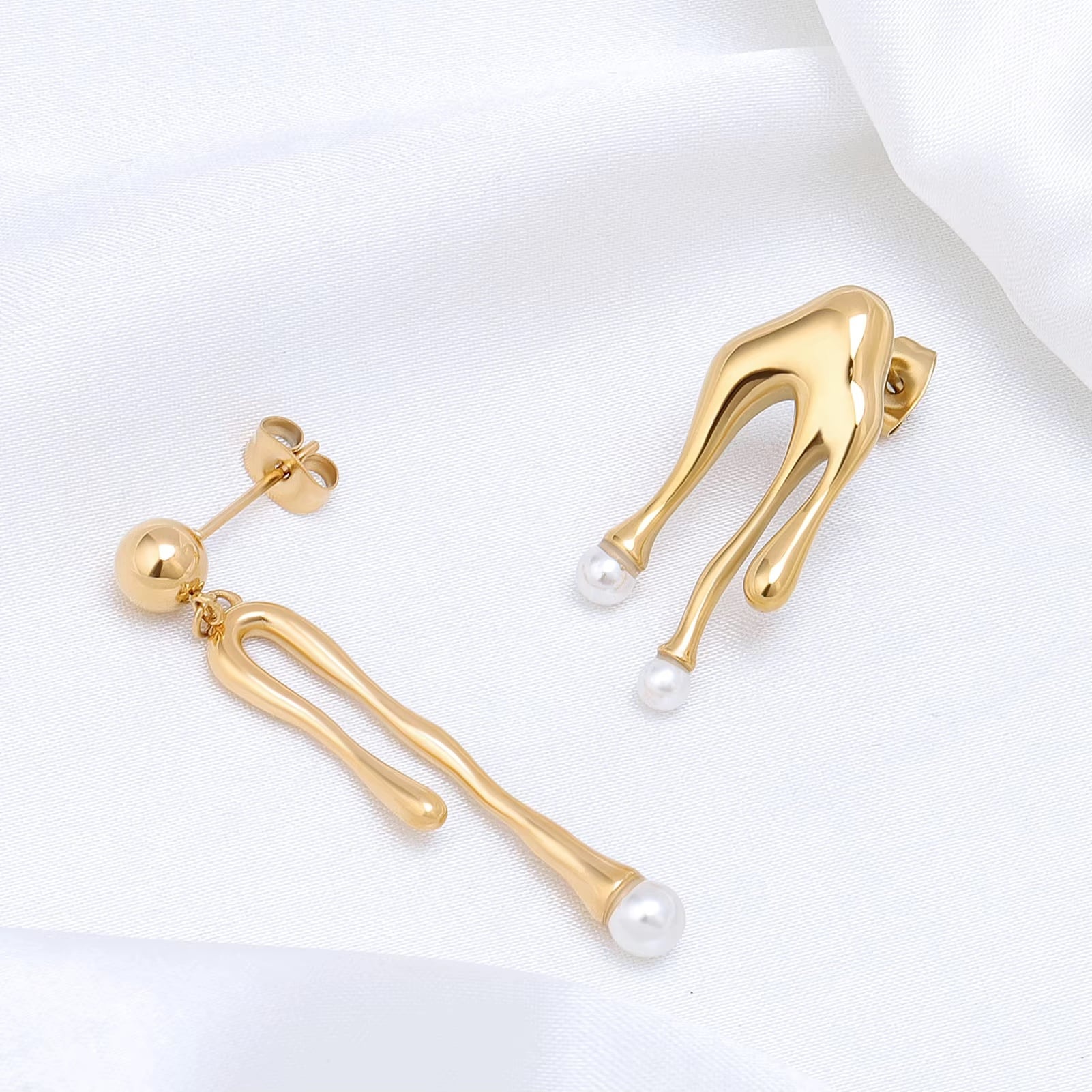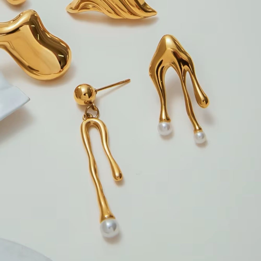 ゴールドの雫が耳元に流れ落ちたような、しなやかでアーティスティックなデザイン。