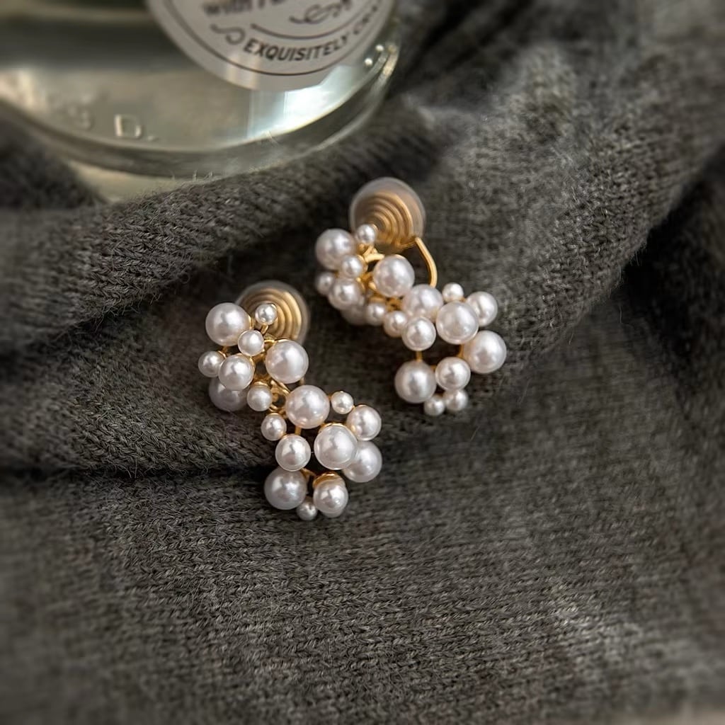 泡のような、ホイップクリームのような、大小のパールがふんわりと重なったイヤリング。