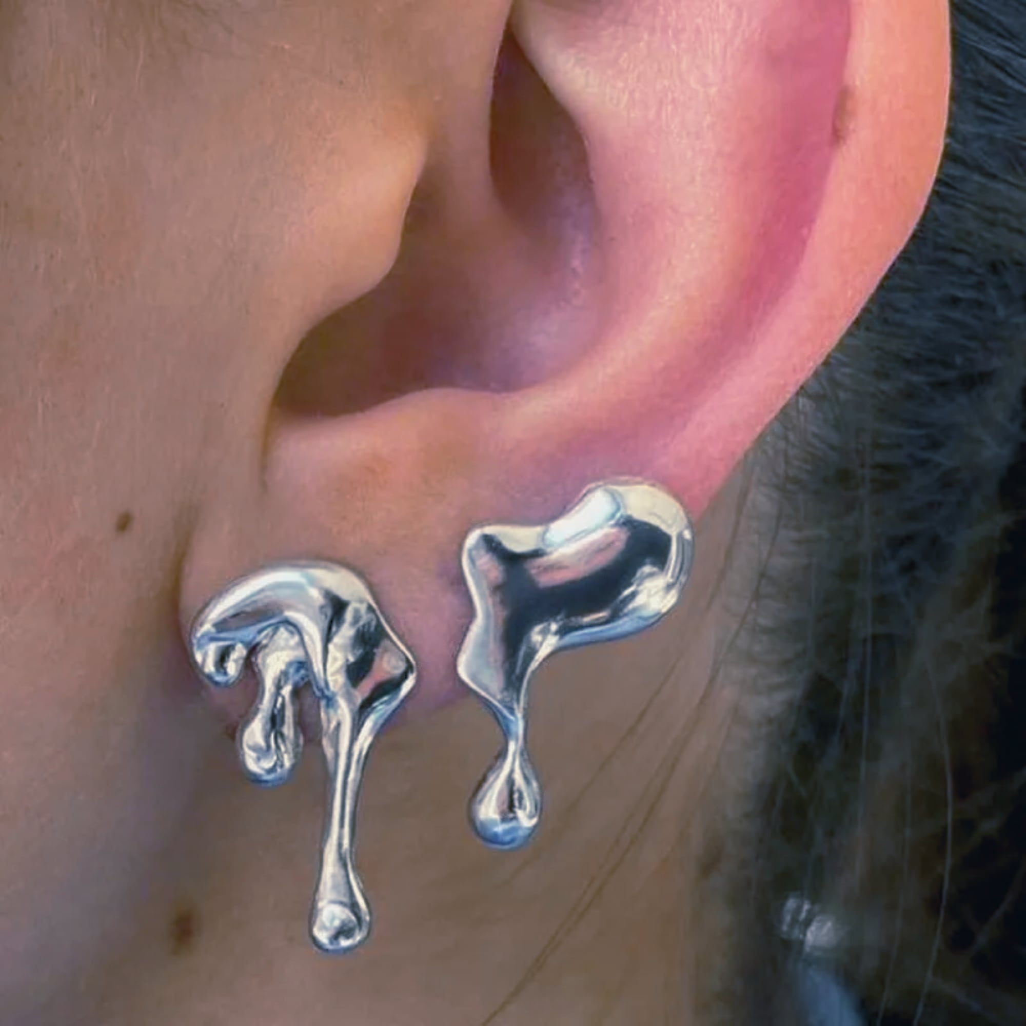 溶けたメタルがそのまま固まったような造形が、耳元で特別な存在感を放ちます。