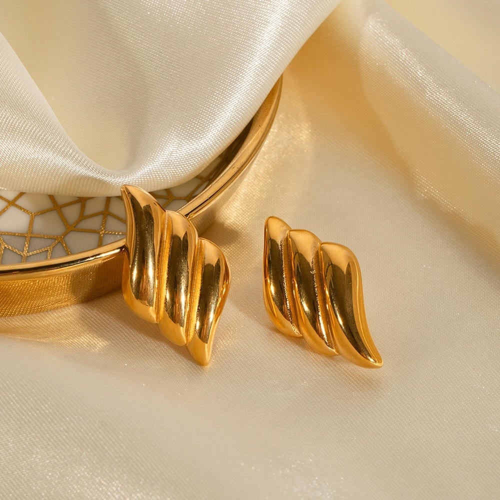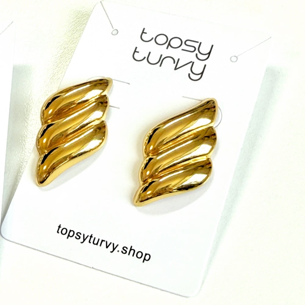 耳元に光を宿す、滑らかなウェーブモチーフのピアス。