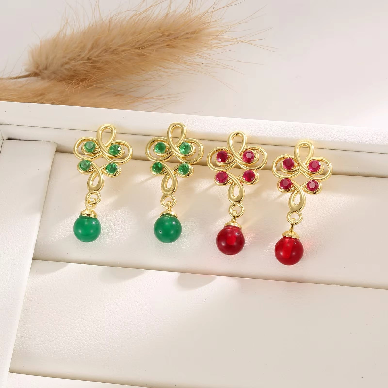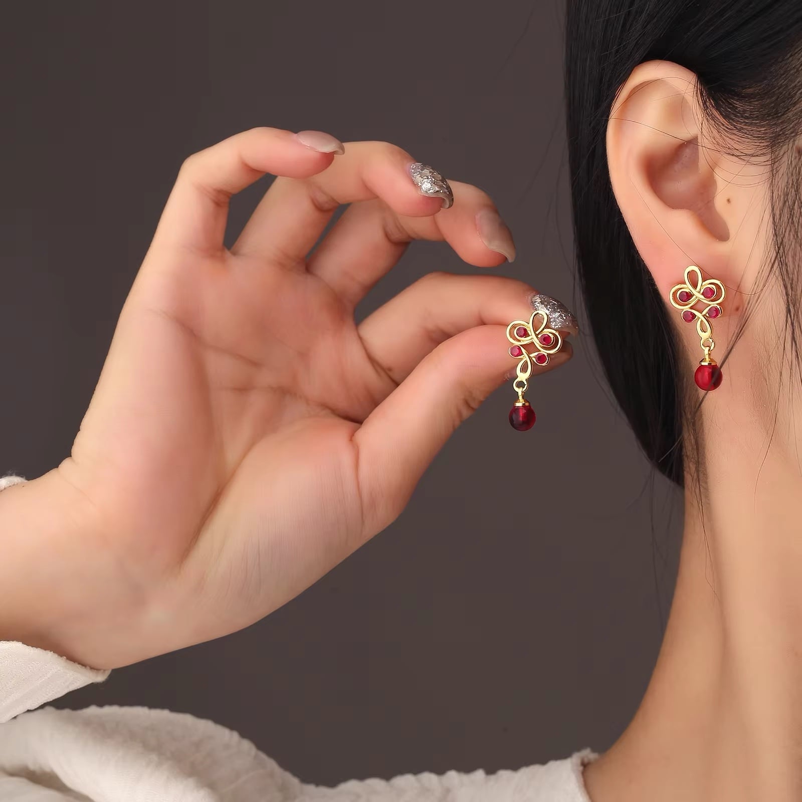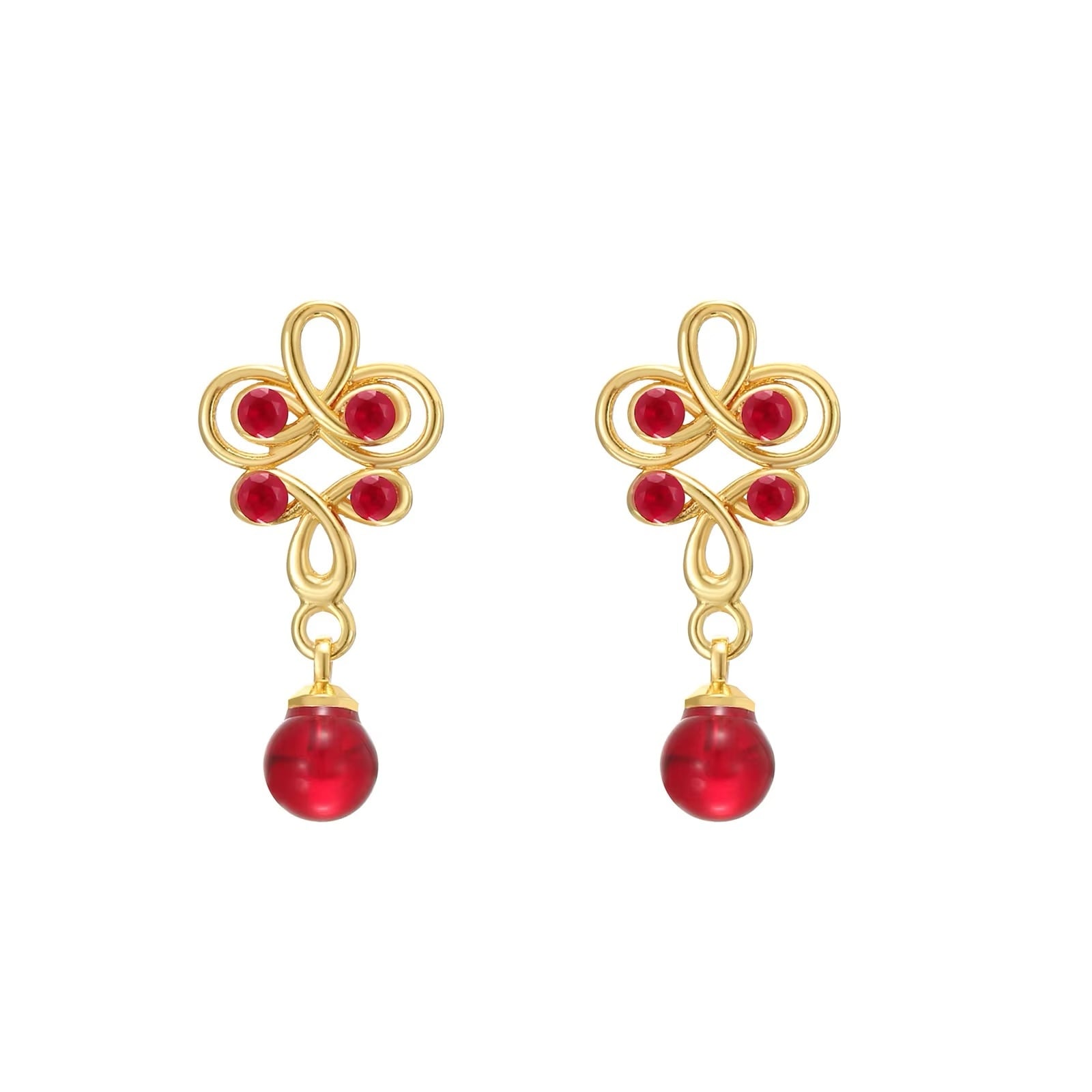 中華テイストをほんのり感じさせる優美なループモチーフに、艶やかなビーズをあしらったピアス。