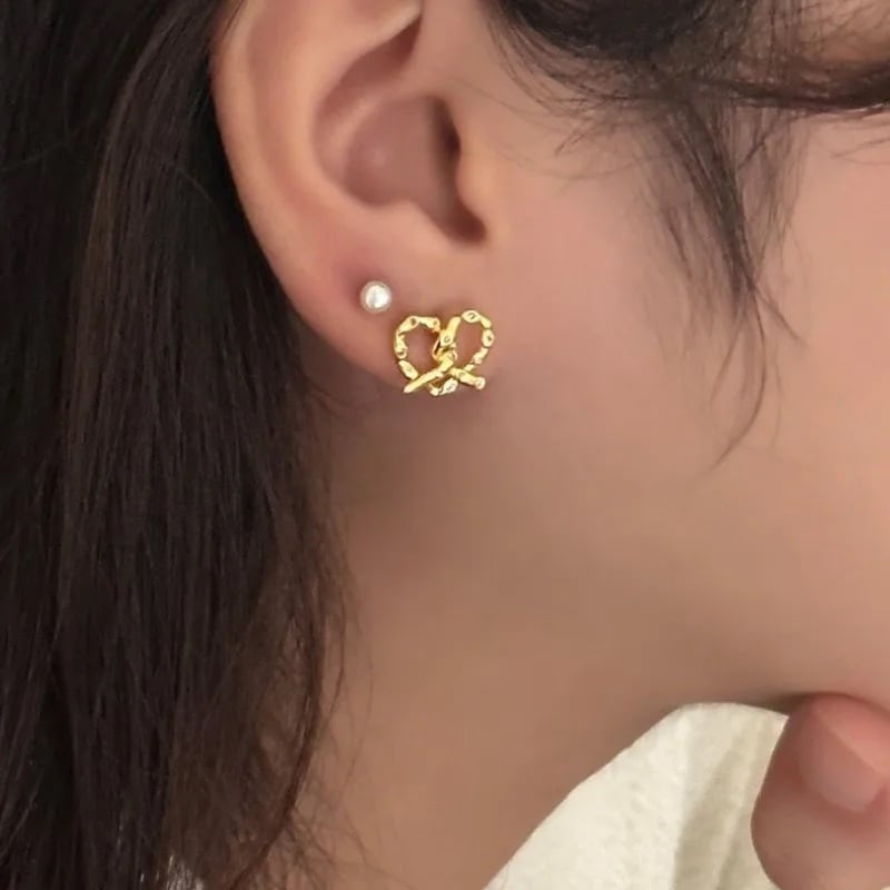 たまらなくキュートな、プレッツェル型のハートピアス!