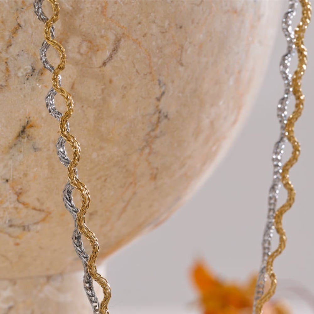 ゆらめくようなウェーブラインが印象的なチェーンネックレス。