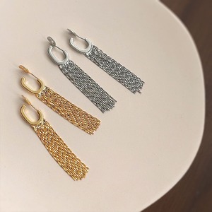 しなやかに揺れるチェーンフリンジが、耳元にリズムと光を添えるイヤリング。