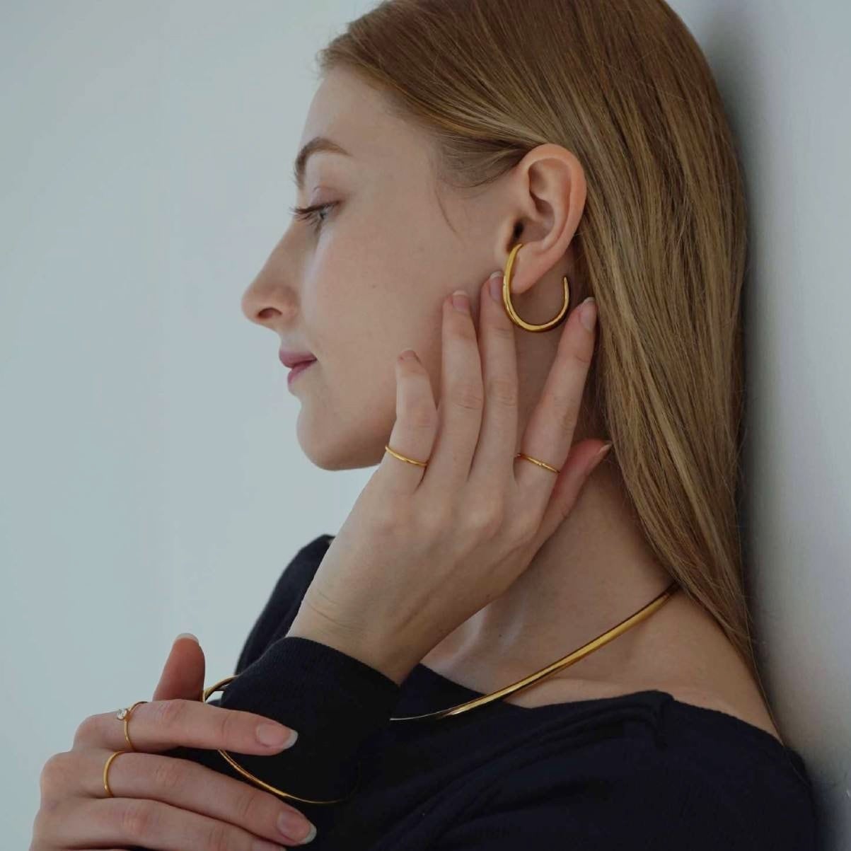 力強いフォルムとミニマルな美しさが同居する、存在感のあるモダンフープ。