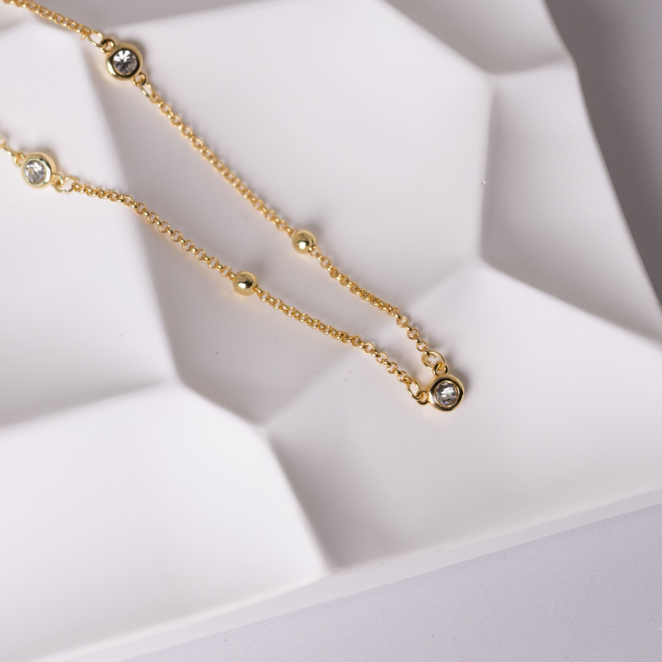 洗練されたリズムが首元にきらめく、上品なネックレス。
