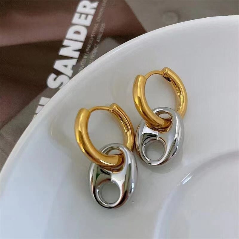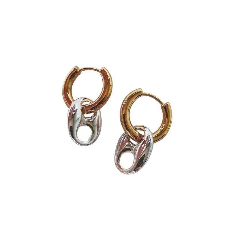 ゴールドのフープに、艶やかなシルバーパーツがリンクしたコンビカラーピアス。