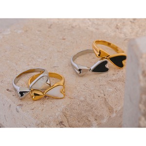 向かい合うふたつのハートが指先で寄り添う、シンプルで愛らしいリング。