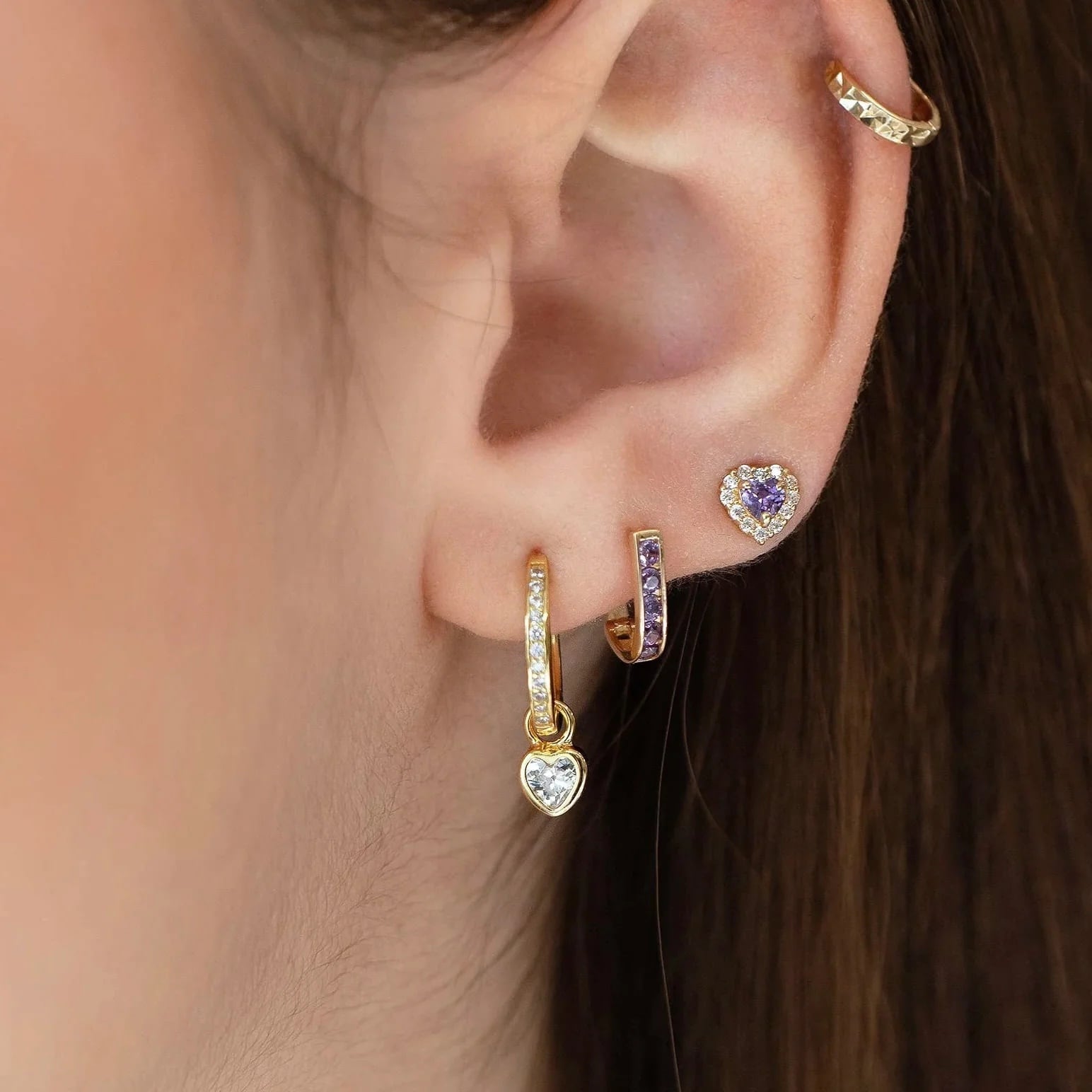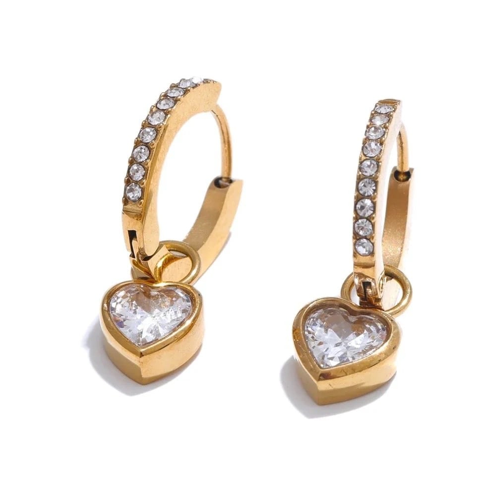 一粒のハートチャームがきらめく、華奢で繊細なフープピアス。