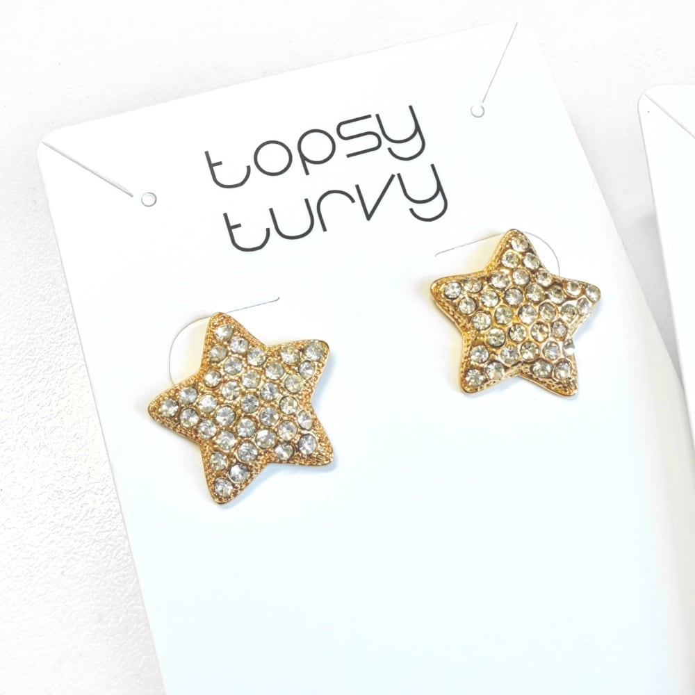 ビジューをぎっしりと敷き詰めた、スターモチーフのスタッドピアス。
