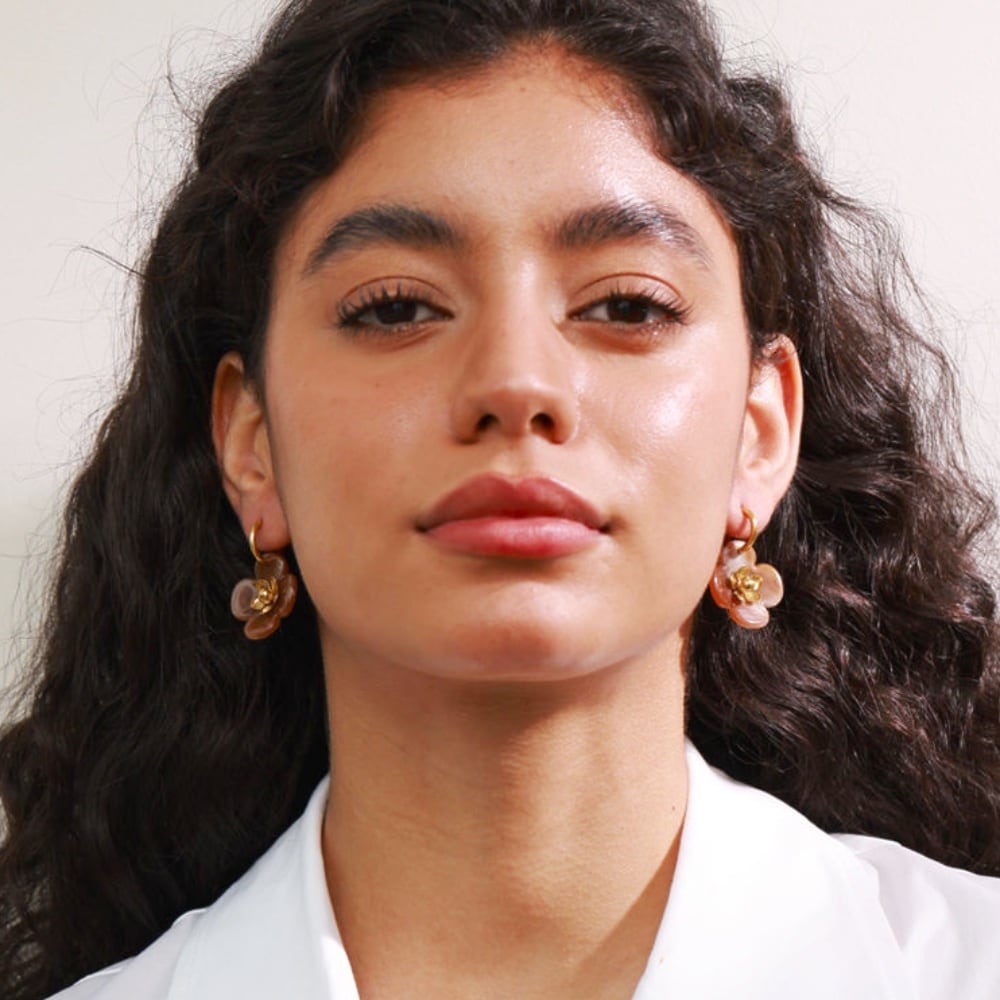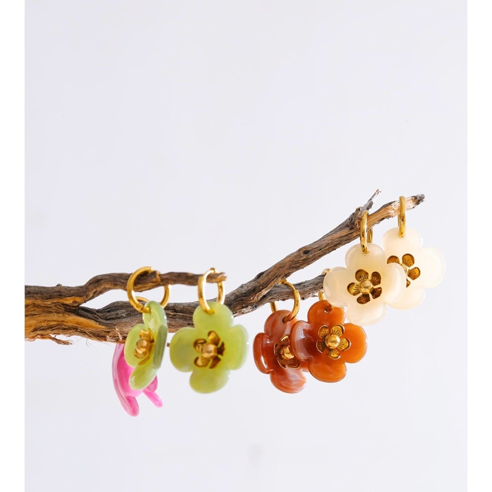 ころんと立体的な花びらが可愛い、マーブルアクリルのフープピアス。
