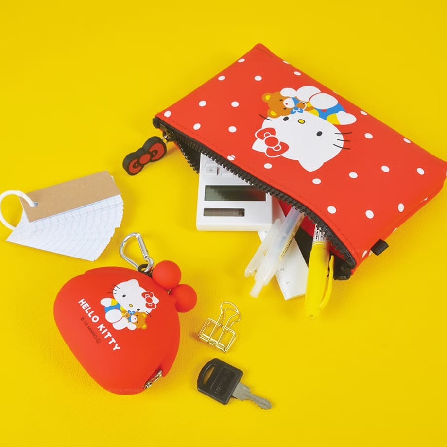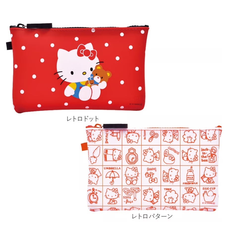 キティちゃんの原点であるパキッとした赤に、レトロな柄の組み合わせ。