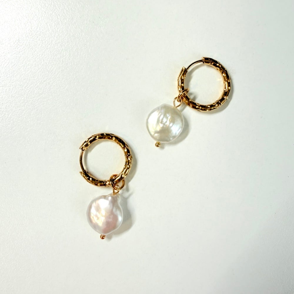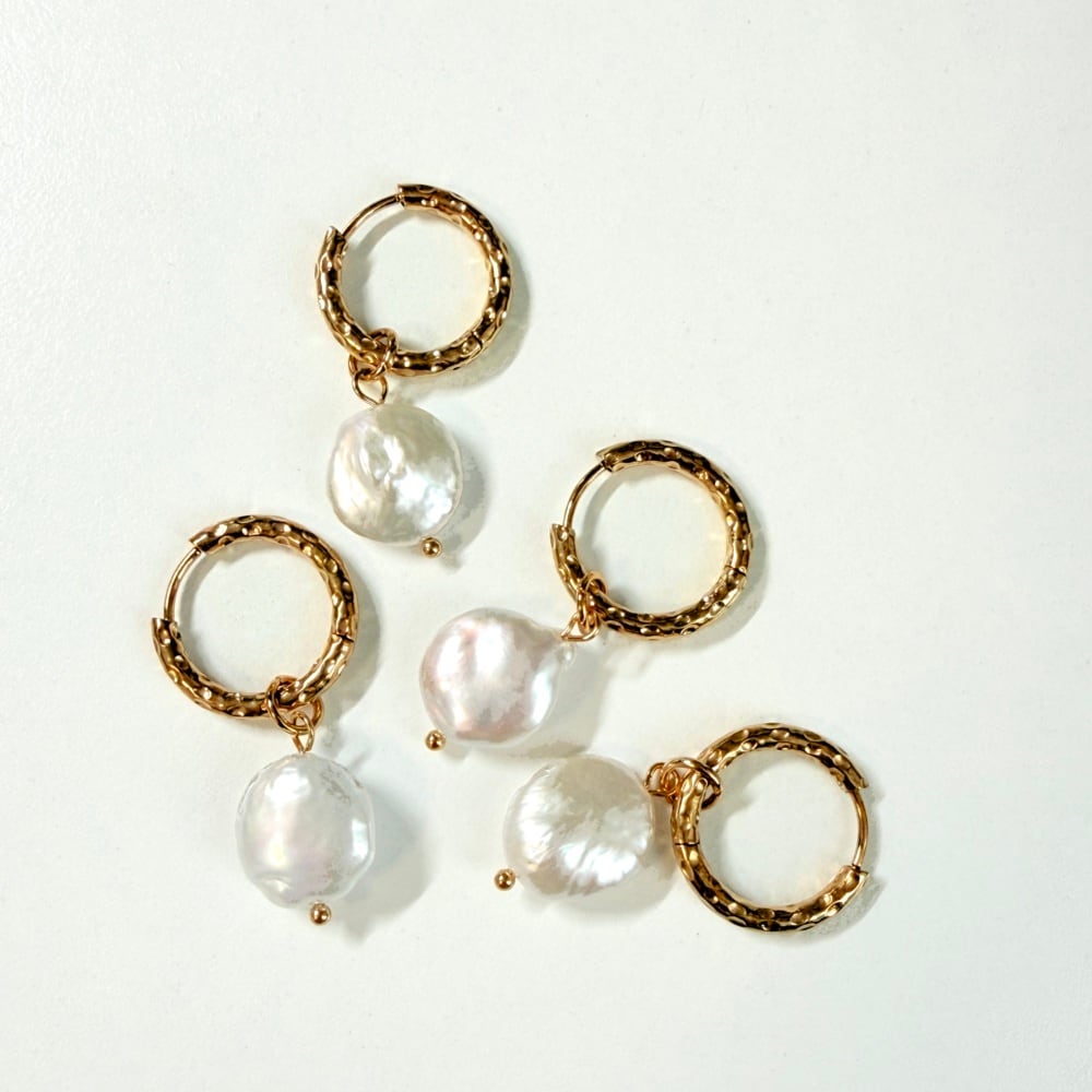 パールチャームは取り外し可能で、フープのみでの着用も楽しめます。