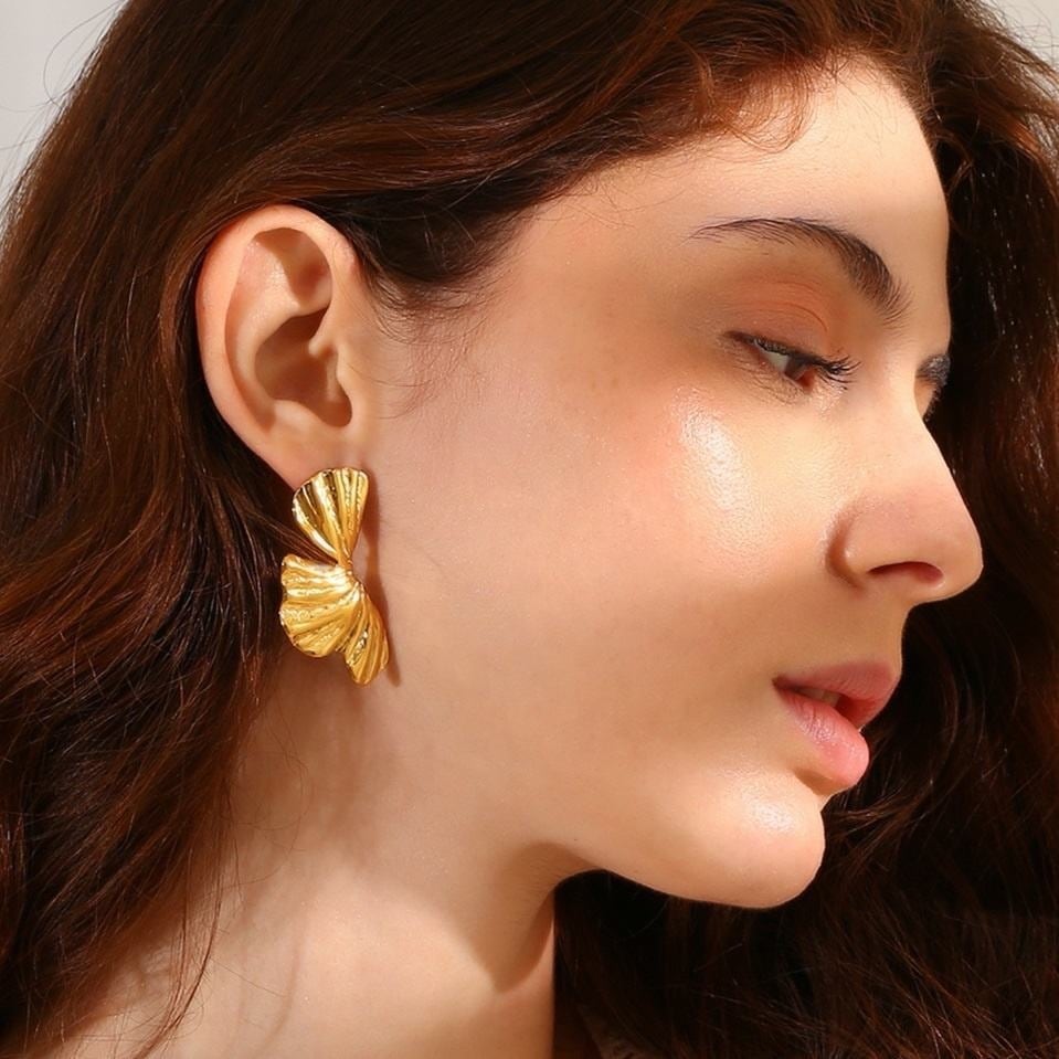 美しく広がるフォルムが印象的な大ぶりピアス。