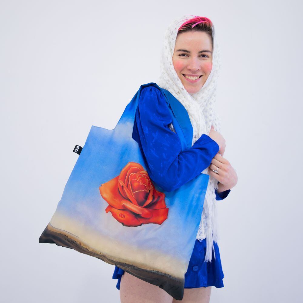 空中に浮かぶ一輪のバラは、美しさや欲望を象徴し、現実ではありえない光景の中に配置されることで、ダリ特有の幻想的な世界観を生み出しています。