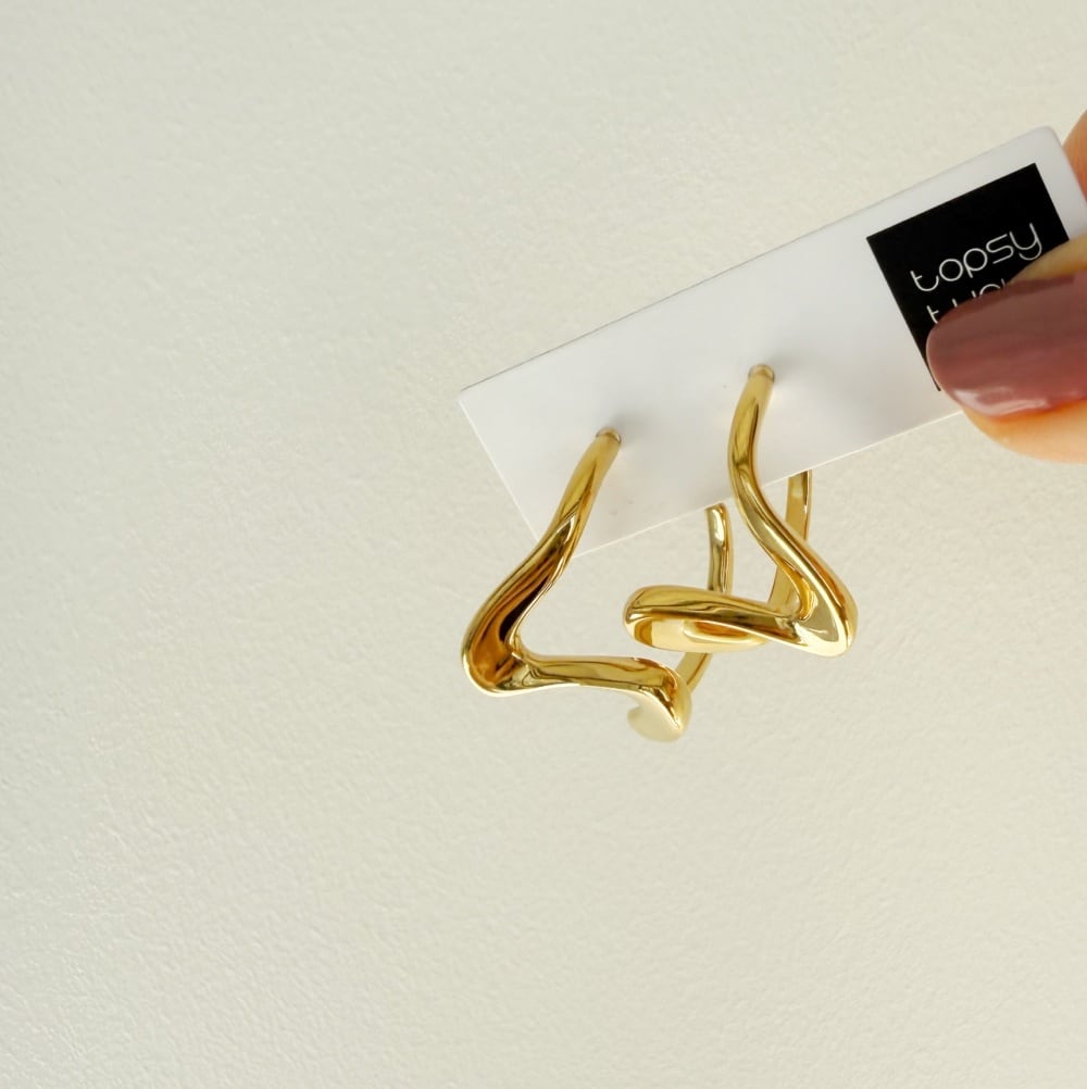 直線でも曲線でもない、曖昧なフォルムが耳元にさりげない緊張感と抜けを生み出します。