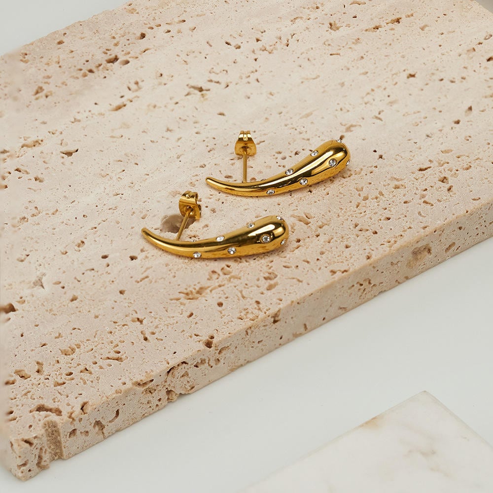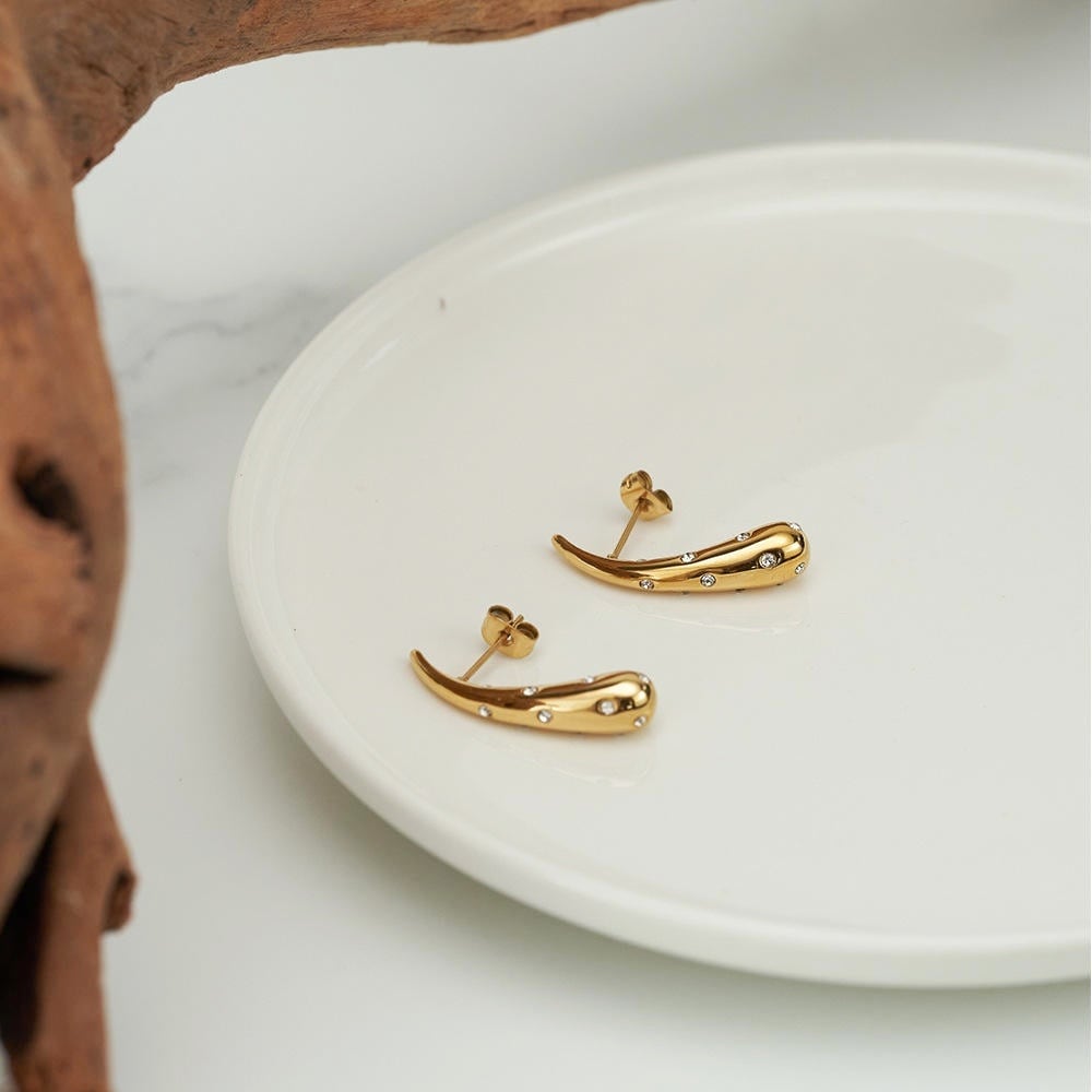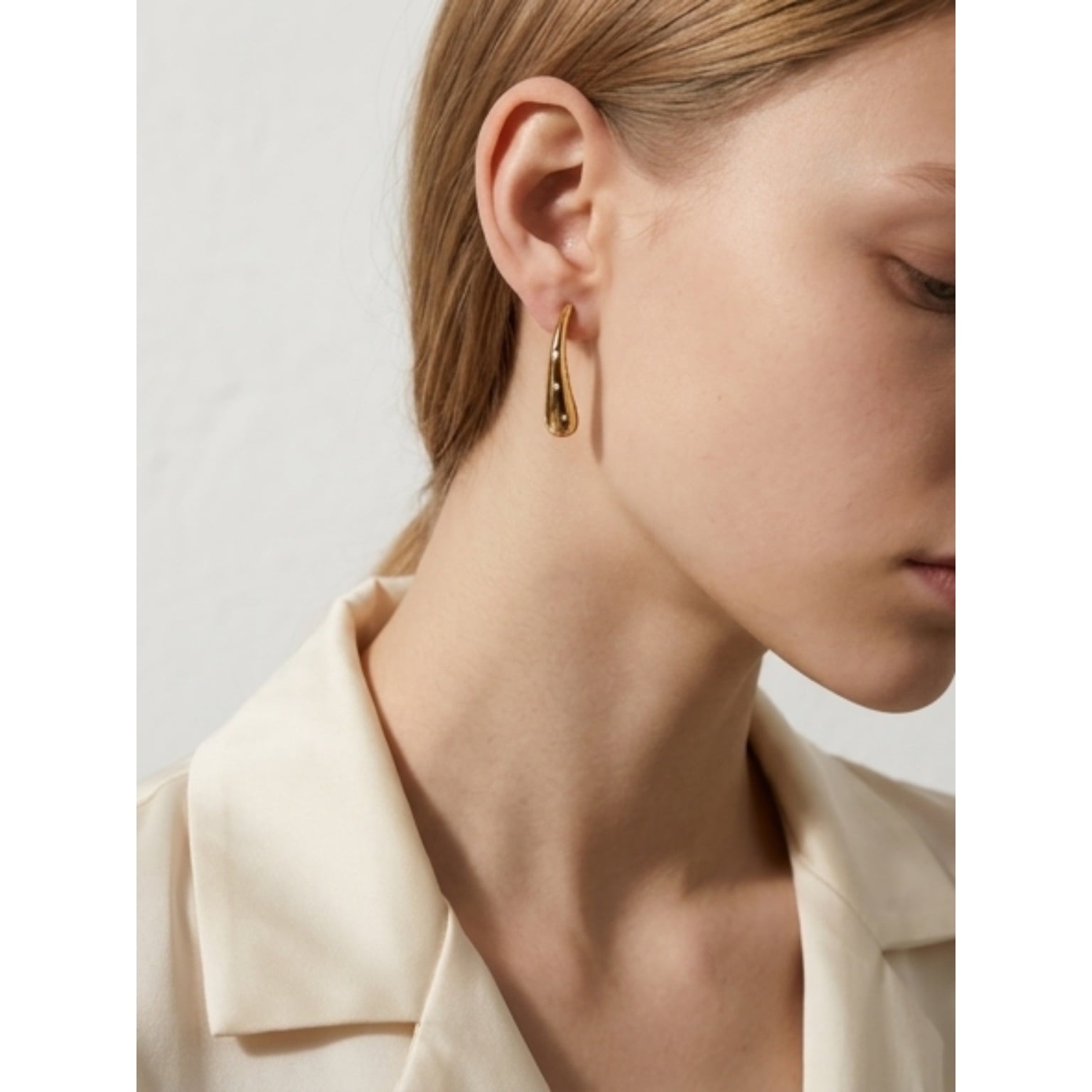 流れ落ちるようなフォルムが美しい、ドロップシルエットのピアス。