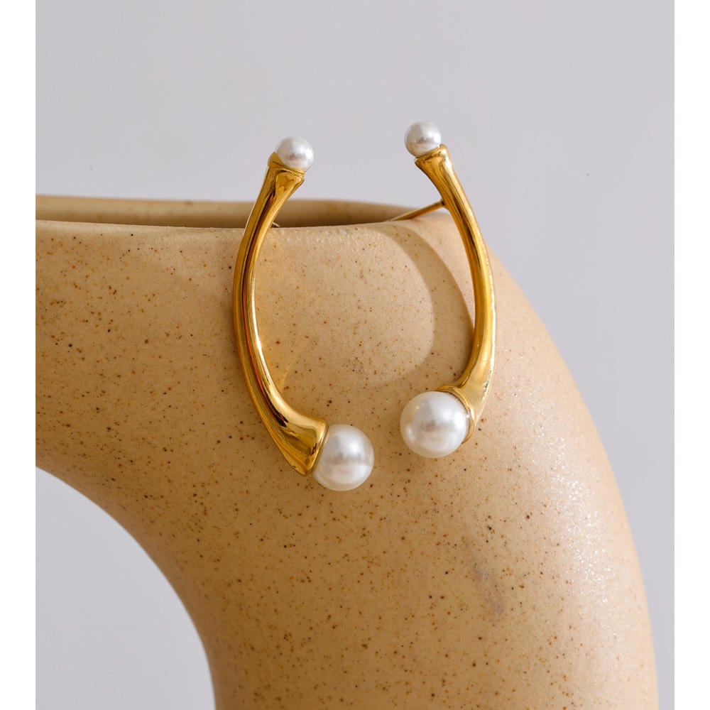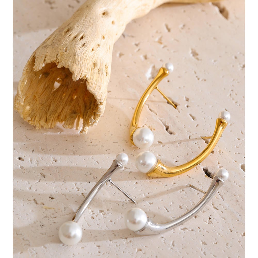 耳に沿うようなフォルムがすっきりとした存在感を生み、両端にあしらわれたパールが、やわらかな光を添えます。