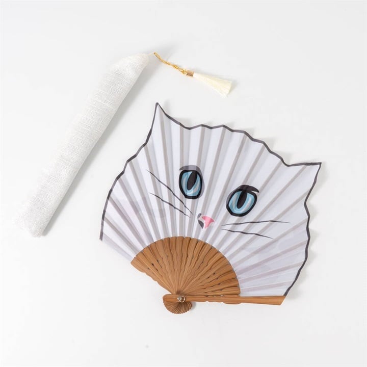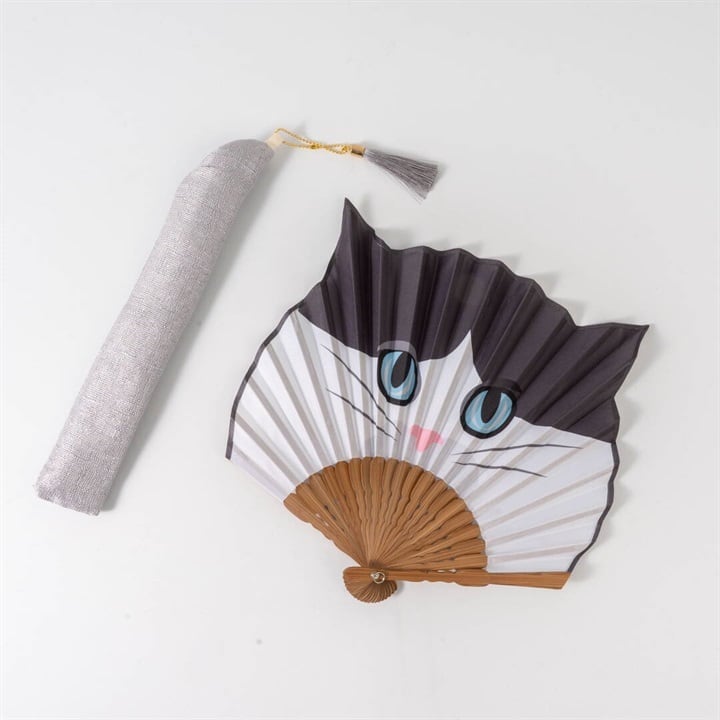 広げると、にゃんこがひょっこり顔を出すユニークな扇子。