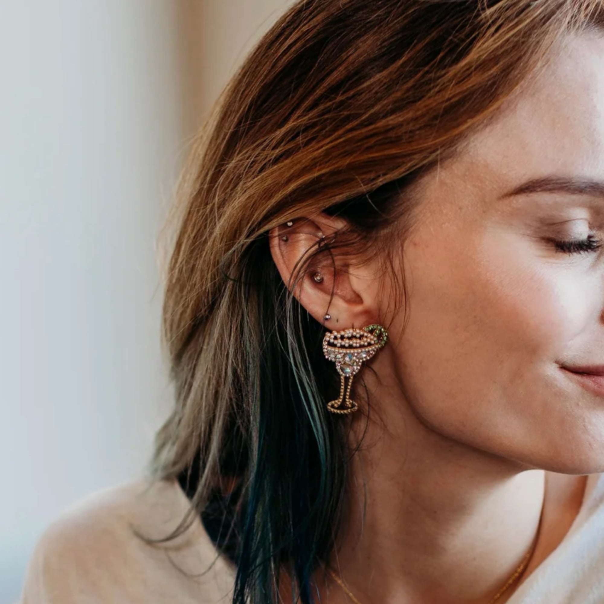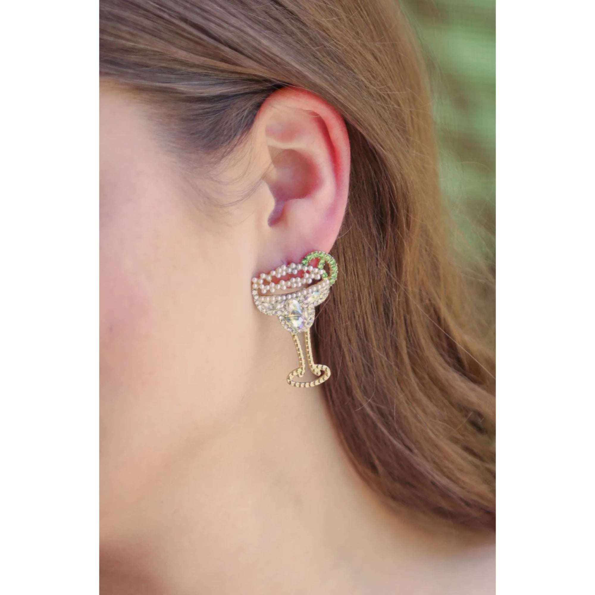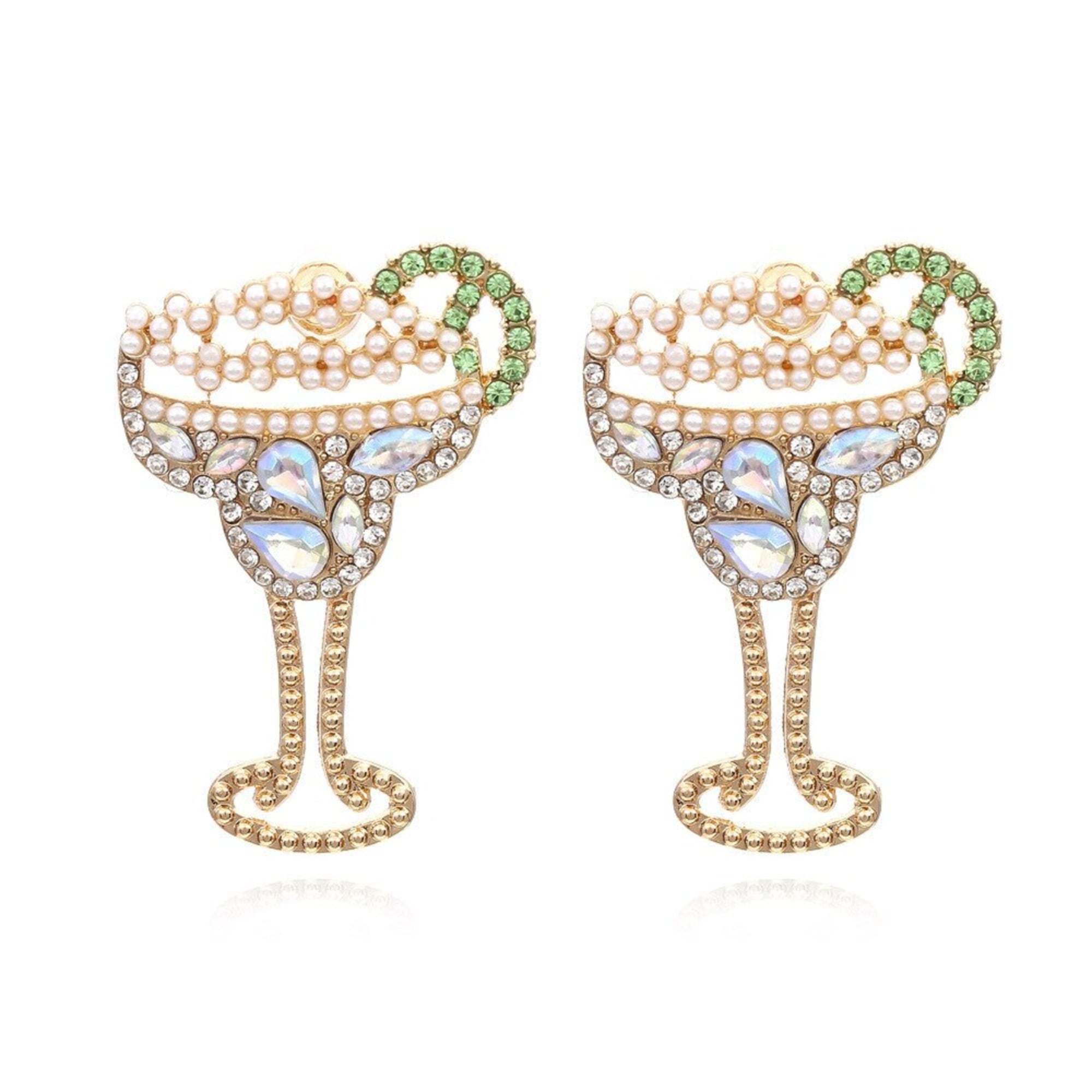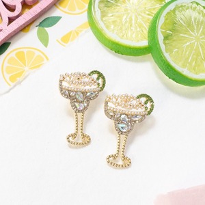 ライムを添えたマルガリータグラスを、ミニパールとラインストーンで贅沢に表現した、大人の遊び心あふれるピアスです。