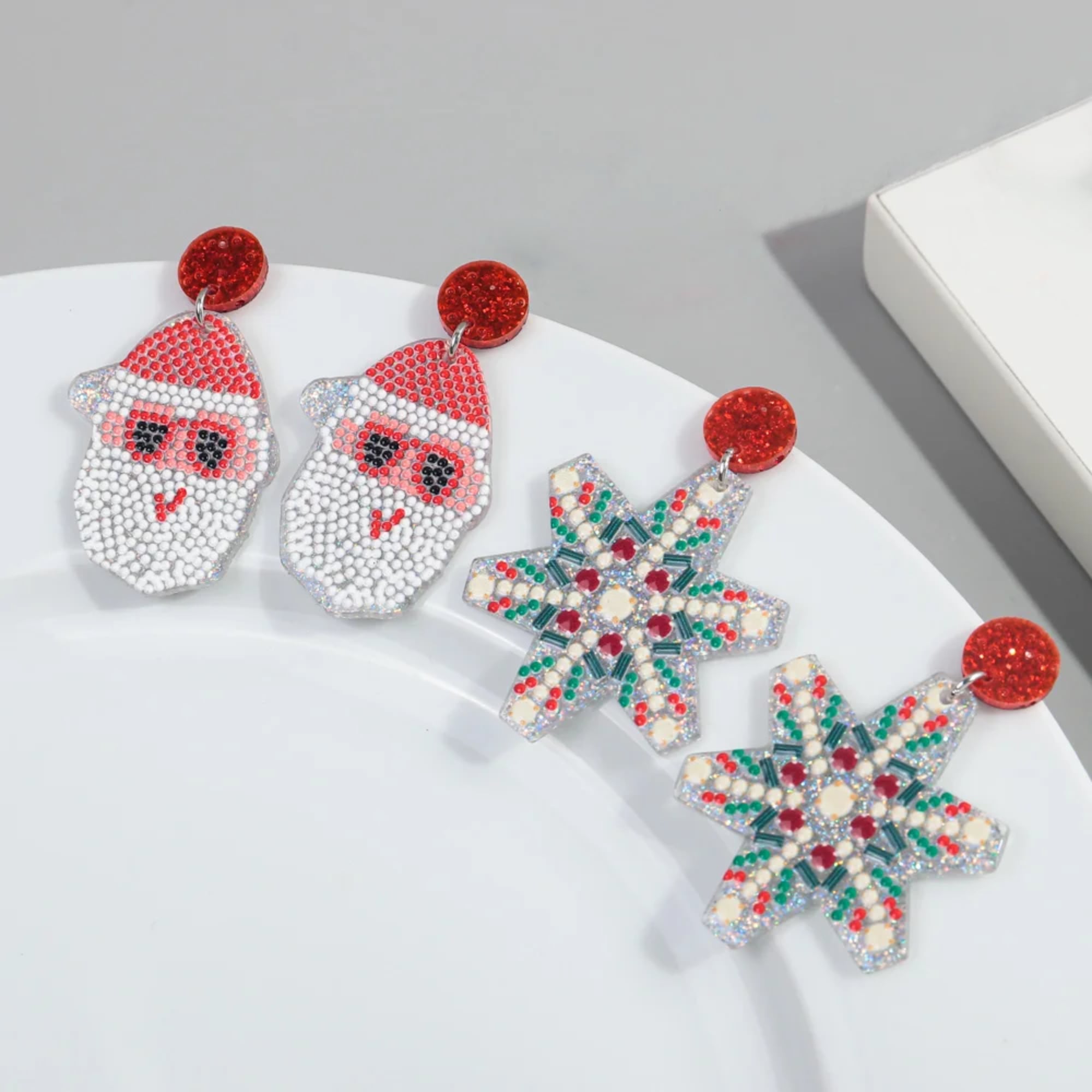 サングラスをかけたイケイケサンタさんと、幾何学カットのスノーフレークです。